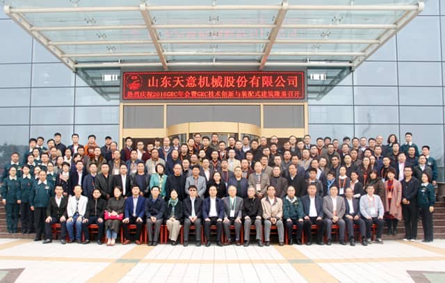 為加快GRC技術創(chuàng)新,積極適應經(jīng)濟新常態(tài),2016年11月5日,2016 GRC年會暨裝配式建筑發(fā)展研討會在山東圣德酒店盛大召開,本次會議由GRC協(xié)會及專業(yè)委員會主辦,山東天意機械股份有限公司協(xié)辦。