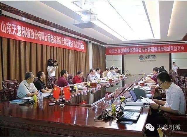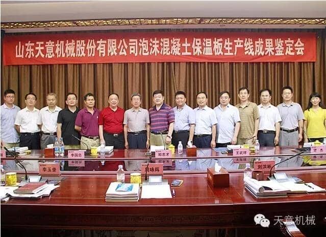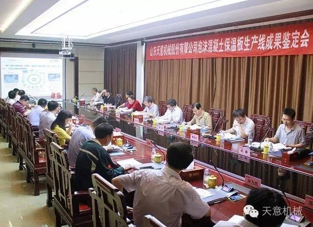 為加快產(chǎn)業(yè)結(jié)構轉(zhuǎn)型升級,突出科技創(chuàng)新驅(qū)動企業(yè)發(fā)展,7月23日,由山東省機械工業(yè)協(xié)會處長李玉奎帶隊一行領導專家,蒞臨天意機械組織召開 "泡沫混凝土保溫板生產(chǎn)線” 和 “石膏墻板成型機” 科技成果鑒定會。濟寧市兗州區(qū)副區(qū)長周詠輝,集團董事長劉洪彬、技術總監(jiān)陳維國等領導出席了本次會議。