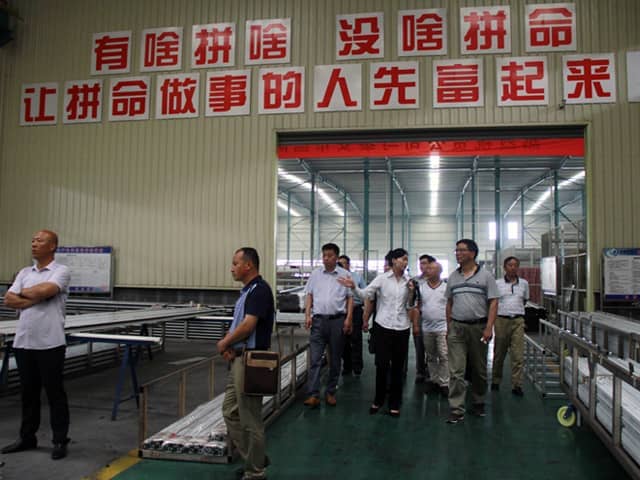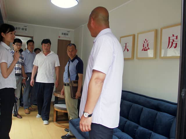 緊接著,參觀了天意樣板別墅、集成房屋、設(shè)備生產(chǎn)車間、鋁型材加工基地。專家領(lǐng)導(dǎo)團對我公司擁有的先進助力建筑垃圾廢棄物資源化利用的擠壓墻板生產(chǎn)線給予了高度評價。