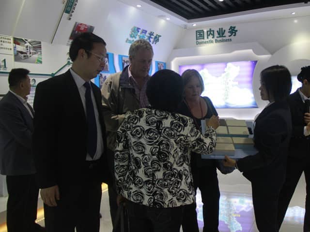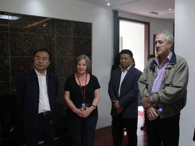 4月26日 澳大利亞外賓、山東大學材料科學與工程學院任教授、兗州區(qū)周區(qū)長一行蒞臨天意機械參觀指導,集團董事長劉洪彬、副總經理、戰(zhàn)略項目部部長孫為民、銷售經理秦艷慧等全程陪同參觀。