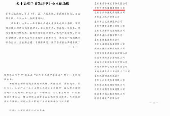賀:山東天意機(jī)械股份有限公司被省政府評(píng)為全省先進(jìn)中小企業(yè)!